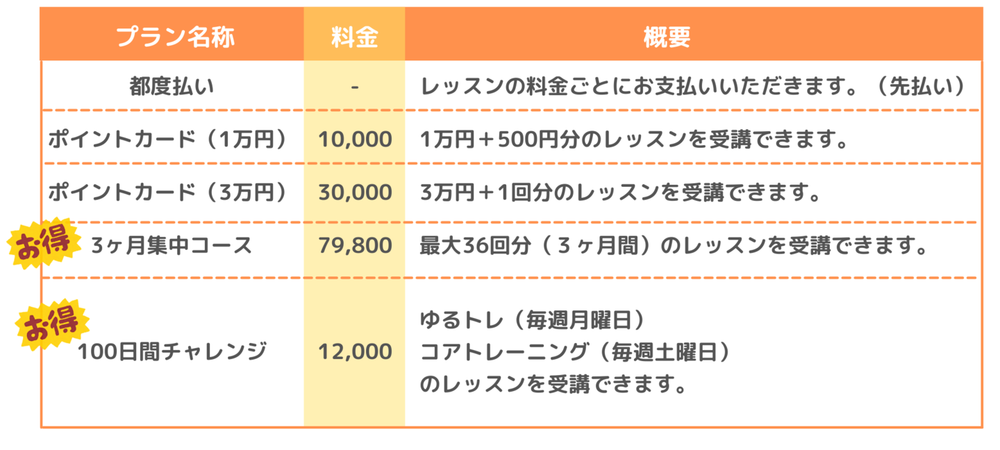 ゆるトレ… ¥2,000(100日間チャレンジの場合…¥1,000/回)